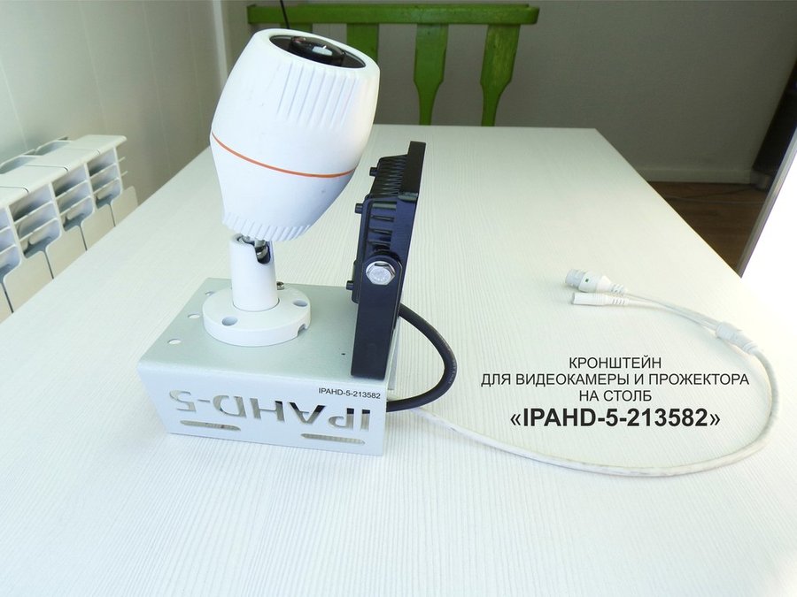 • Конструкция кронштейна позволяет крепить дополнительную опцию в виде разводной коробки, для укладки соединительных электропроводов от камеры и прожектора.