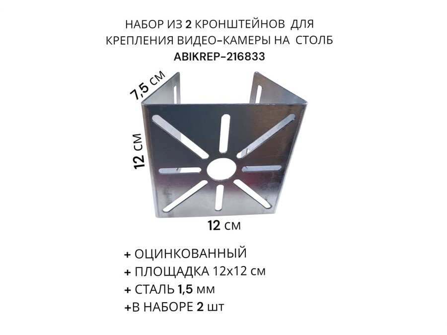 Набор из 10 шт. Кронштейн оцинкованный для камеры "ABIKREP-216835" 120х120мм, под хомуты,вылет 7,5см