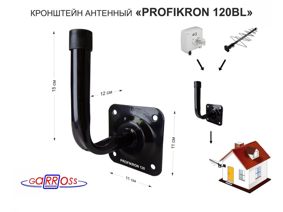 В корзину Купить в 1 клик Кронштейн антенный, вылет 0,12м "PROFIKRON 12BL-204848" черный, вверх 0,15м, диаметр 22мм