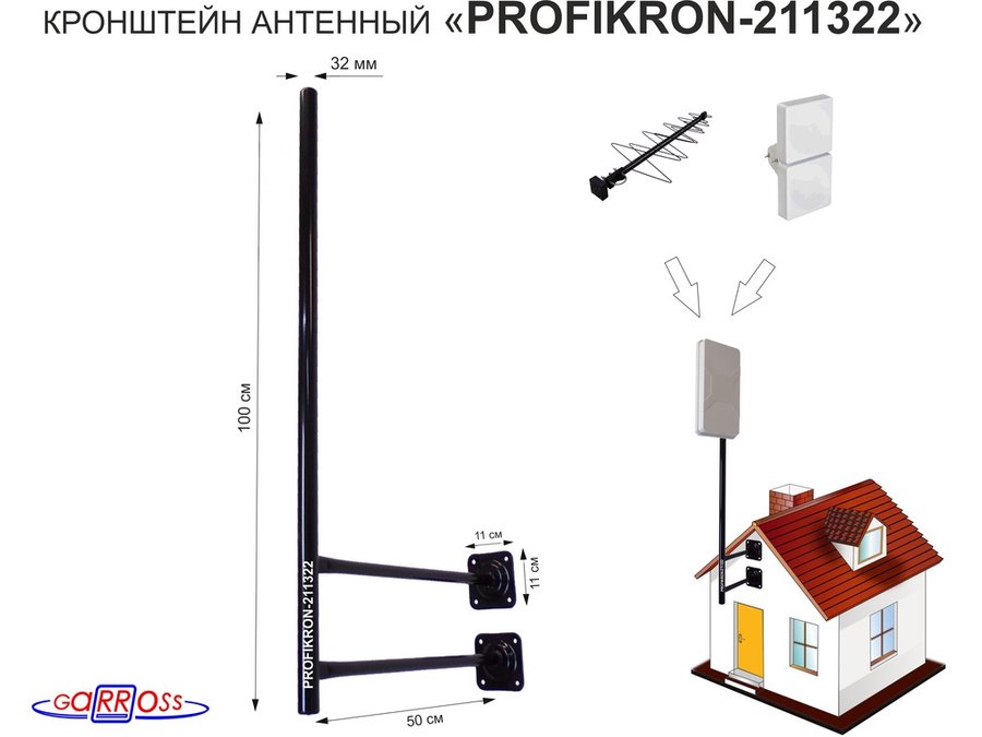 . Для антенн. Кронштейны к стене "PROFIKRON" Диаметр 32мм, две опоры, высотой 1 метр с колпачком.