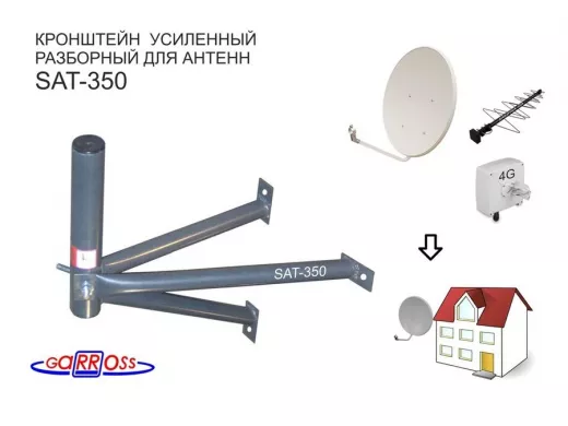 • "SAT-350" кронштейн антенный разборный предназначен для крепления антенн эфирных и спутниковых офсетных антенн к стенам зданий