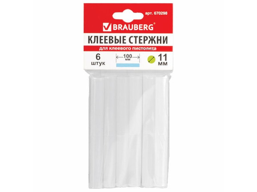 В корзину Купить в 1 клик Клеевые стержни, диаметр 11,0мм, длина 100мм, белые, КОМПЛЕКТ 6 штук "BR-79848", европодвес