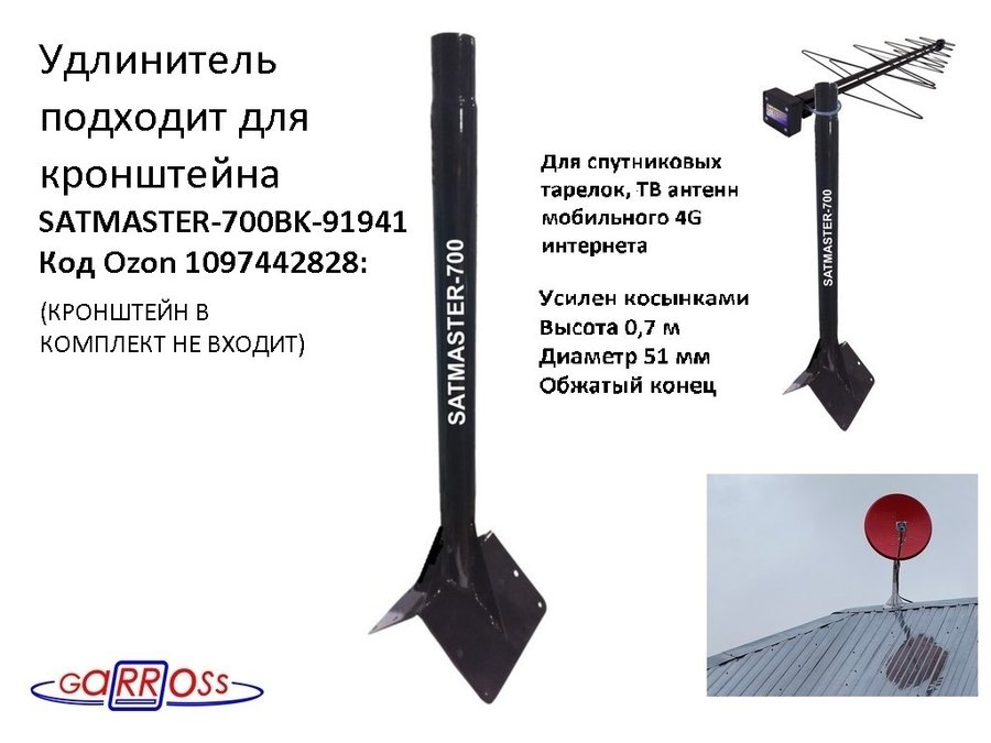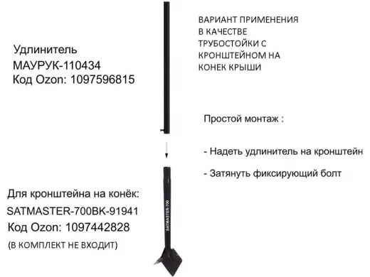 • Подходит для кронштейна на конёк крыши SATMASTER-700BK-91941 и SATMASTER-900BK-122293.