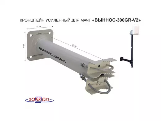 Кронштейн усиленный для мачт, вылет 0,3м "ВЫННОС-300GR-V2-113981" серый с 1отв.25мм для гофры, 51мм