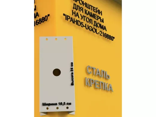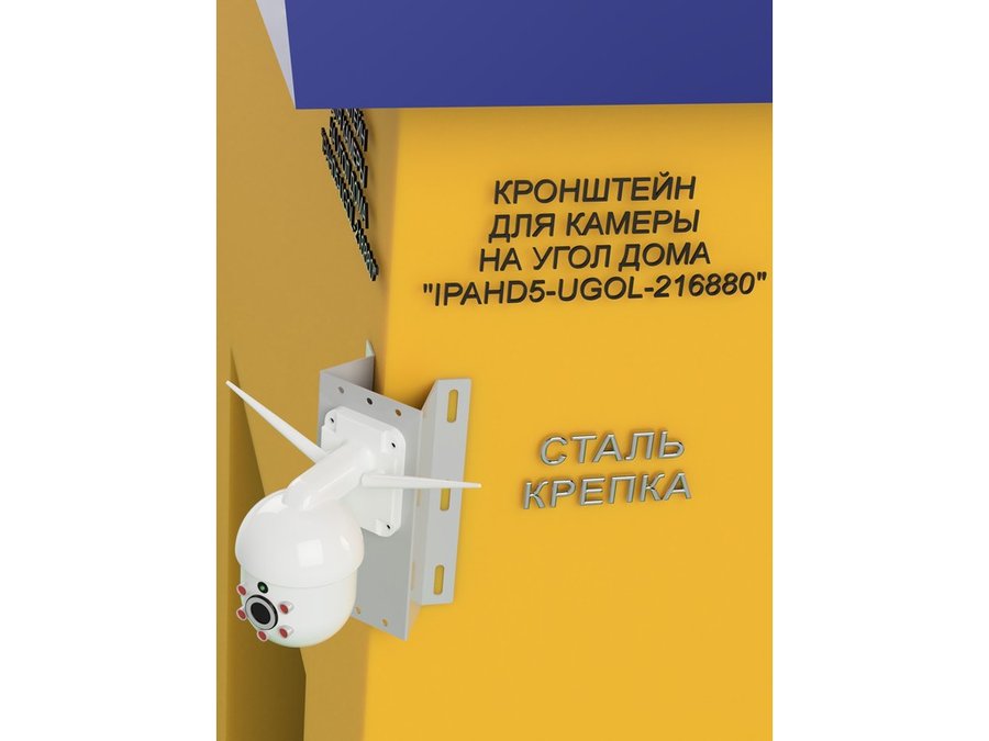 Кронштейн угловой металлический для камеры видеонаблюдения "IPAHD5-UGOL-216880". Подходит для большинства типов видеокамер: цилиндрических, купольных или поворотных