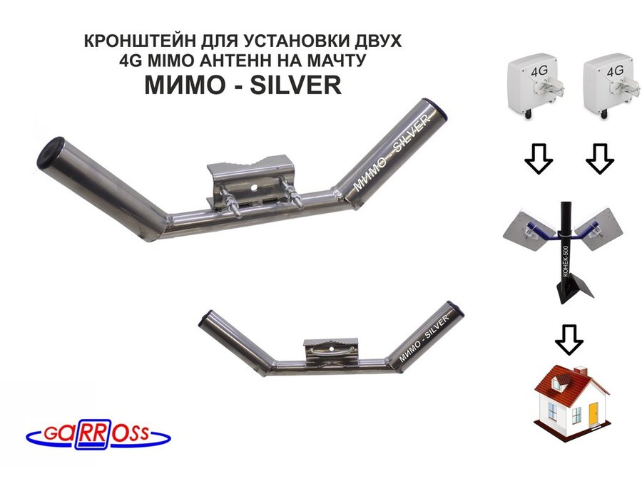 В корзину Купить в 1 клик Кронштейны "МИМО- SILVER" СЕРЕБРИСТЫЙ для 4G антенн мобильного интернета с X-поляризацией