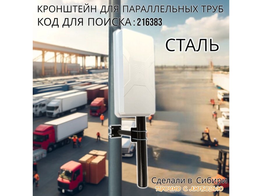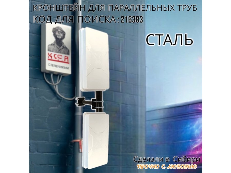 - Универсальный усиленный кронштейн для параллельных труб предназначен для крепления прожектора,антенн,видеокамер на трубе диаметром от 15 до 51мм.