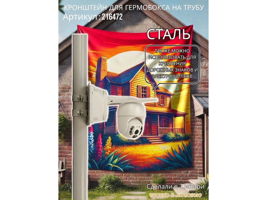 - Универсальный усиленный кронштейн предназначен для крепления гермобоксов,коробок с видеокамерой, дорожных знаков ,электрощитков на трубе диаметром 50мм.