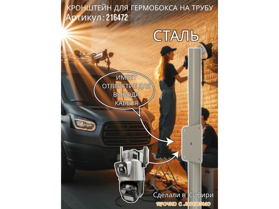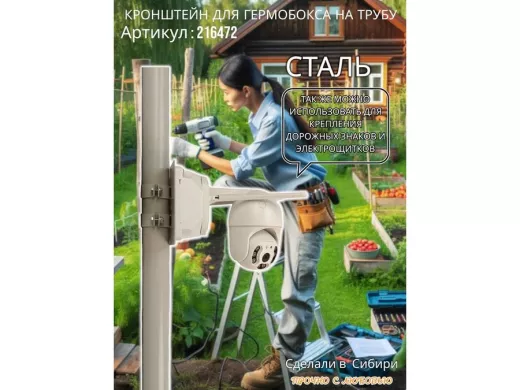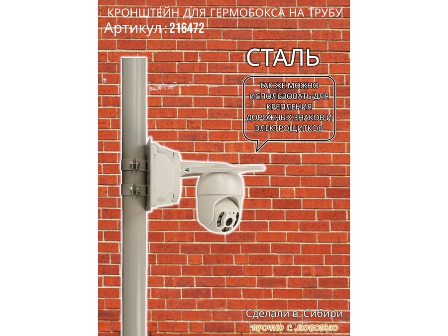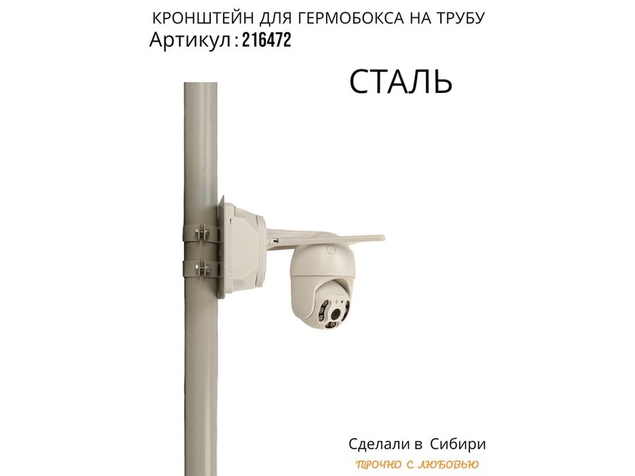 - Кронштейн позволяет быстро зафиксировать гермобокс с видеокамерой на трубу.