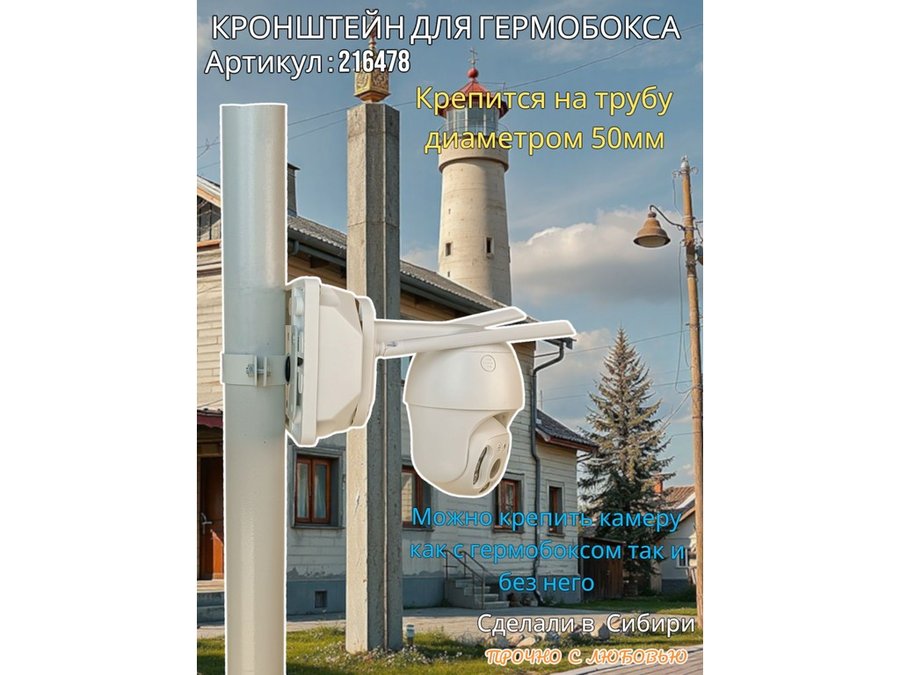 Универсальный усиленный кронштейн предназначен для крепления гермобоксов,коробок с видеокамерой, дорожных знаков , электрических щитков на трубе диаметром 50мм.