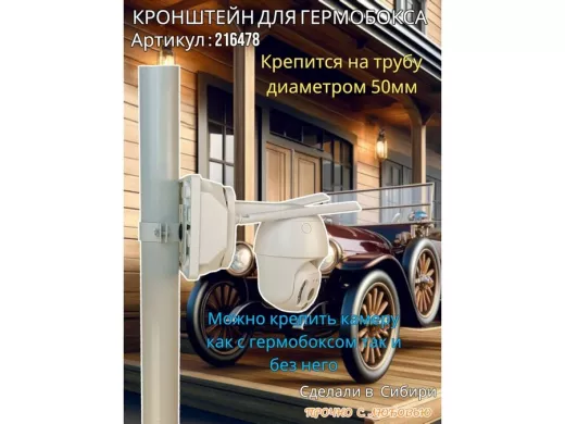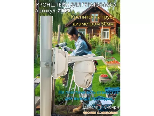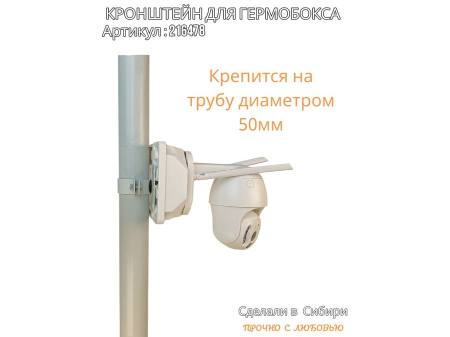 Кронштейн позволяет быстро зафиксировать гермобокс с видеокамерой на трубу.