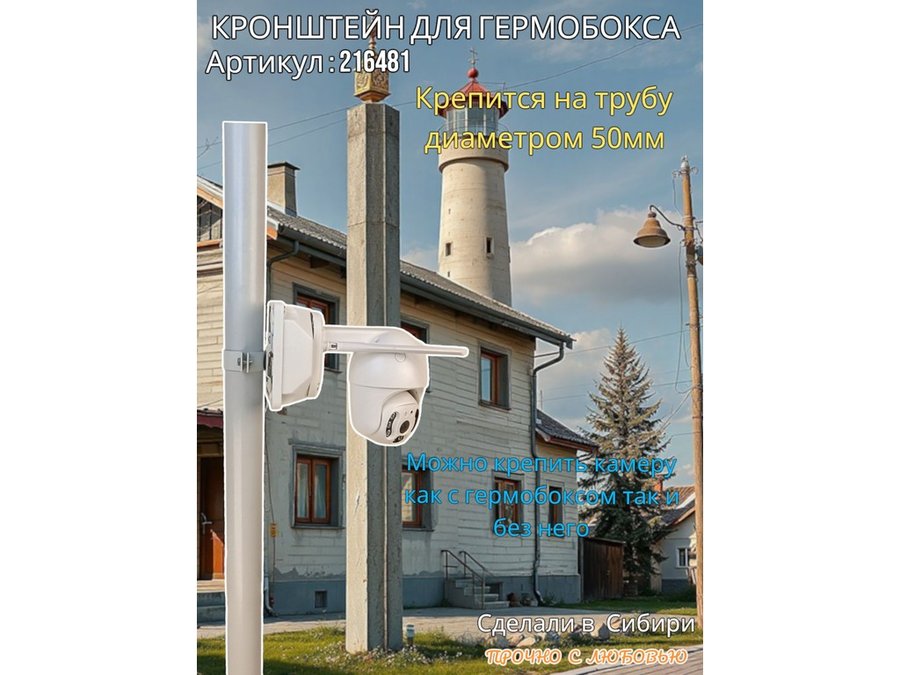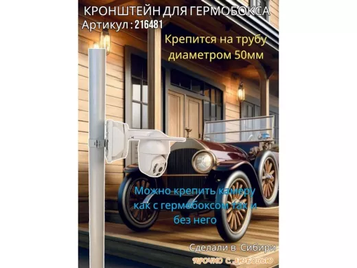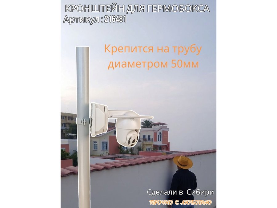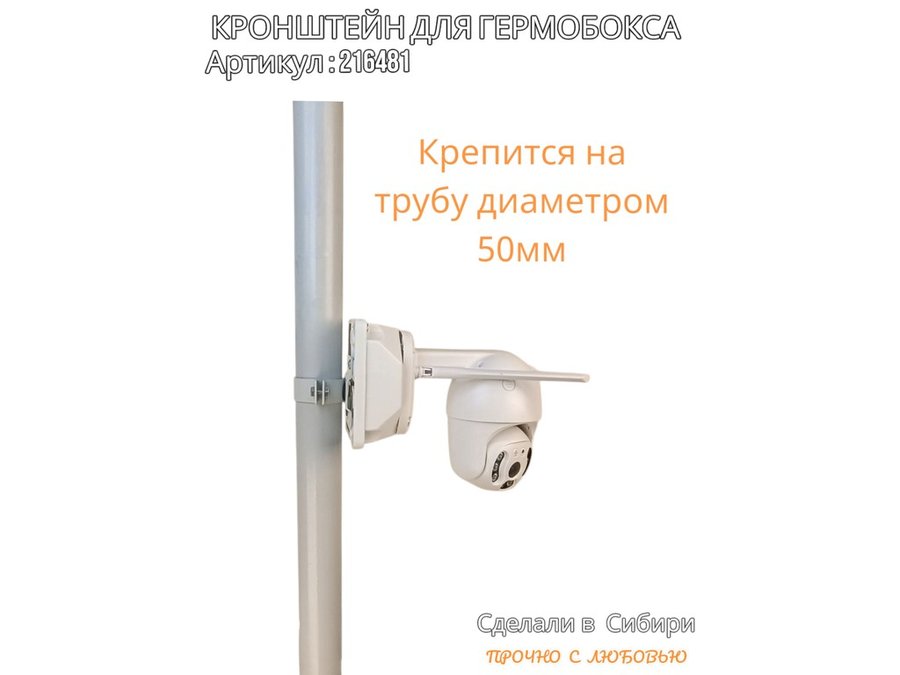 - Кронштейн позволяет быстро зафиксировать гермобокс с видеокамерой на трубу.