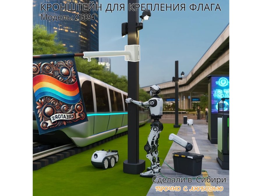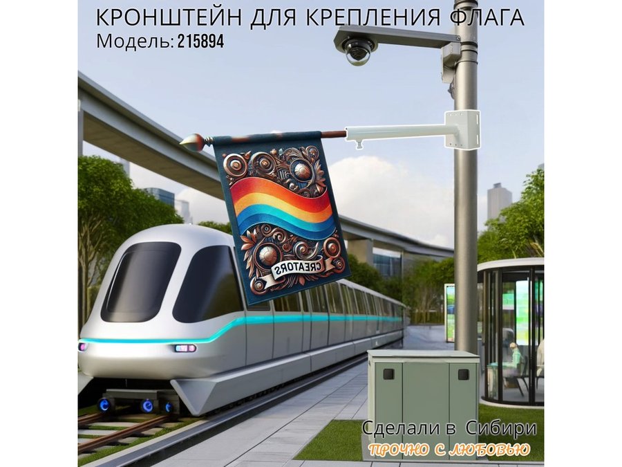 Кронштейн позволяет быстро и прочно зафиксировать флаг или вазон на столбе без его сверления.