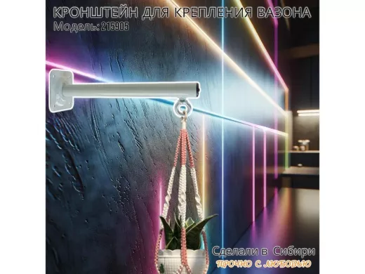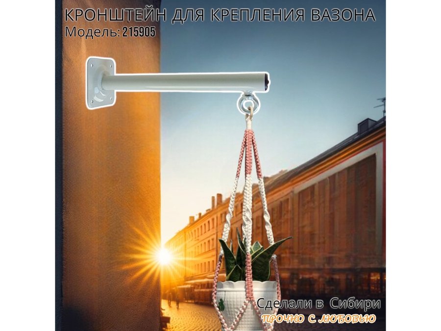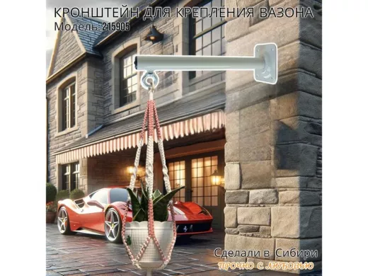 Кронштейн для крепления кашпо, вазона на стене угол 90гр вылет 35см "ПРОСЕКИНО-215905" сталь, серый