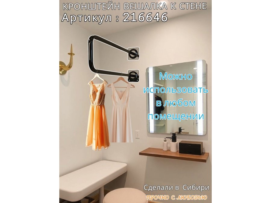 Кронштейн для плечиков с одеждой, вешалка к стене 60 х 20 см "ПРОСЕКИНО 216646" чёрный, 22мм