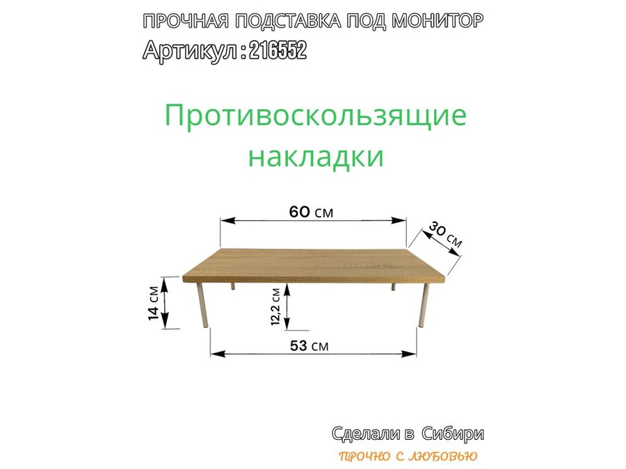 В корзину Купить в 1 клик Подставка под монитор на стол 60х30см высота 14см "ABBIKUS-216552" дуб сонома, серые ножки