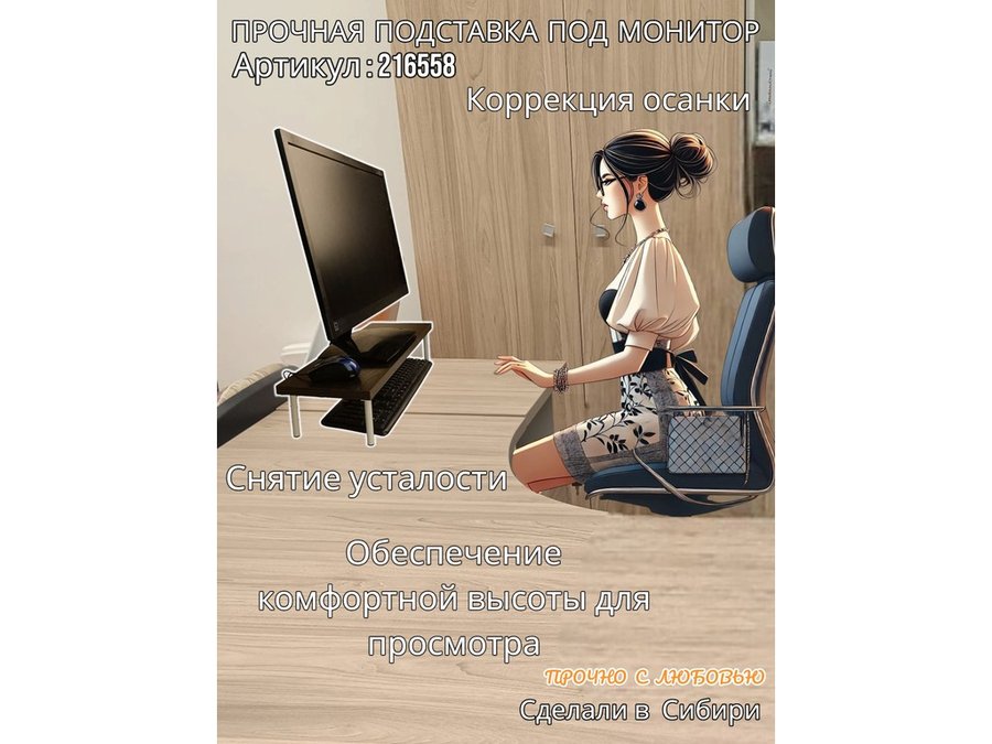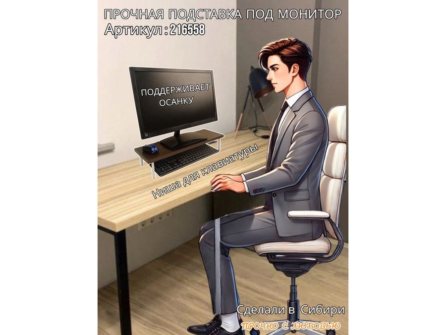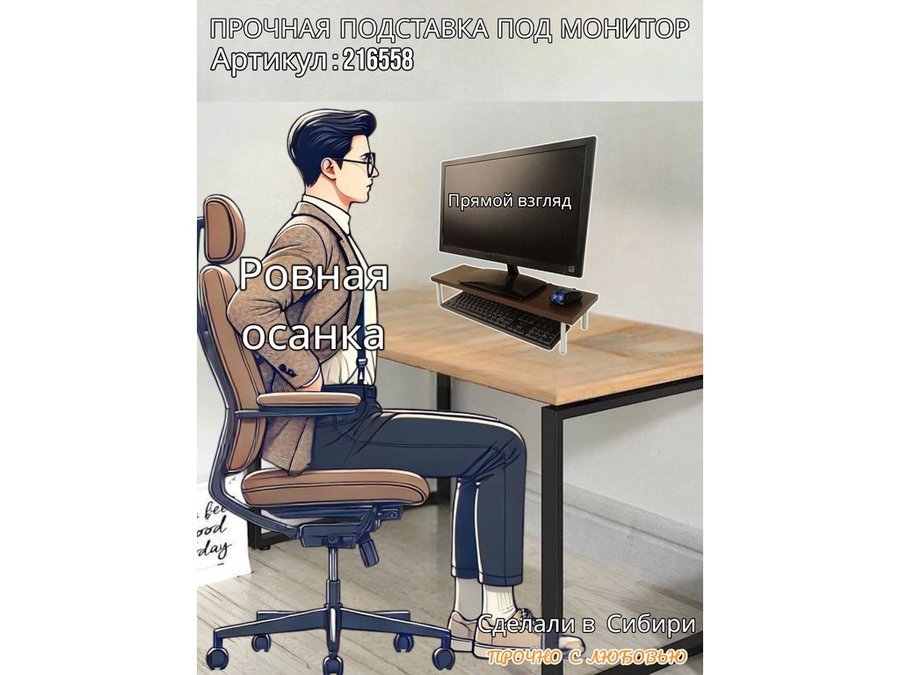 - Универсальная подставка для монитора имеет лаконичный и стильный дизайн, идеально подойдет для любого интерьера.