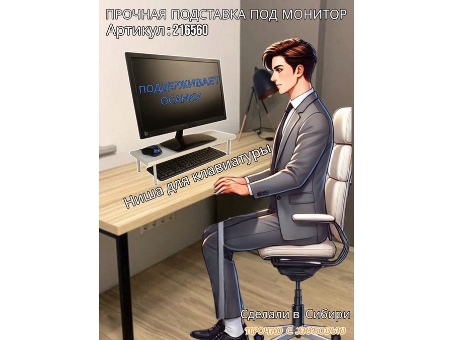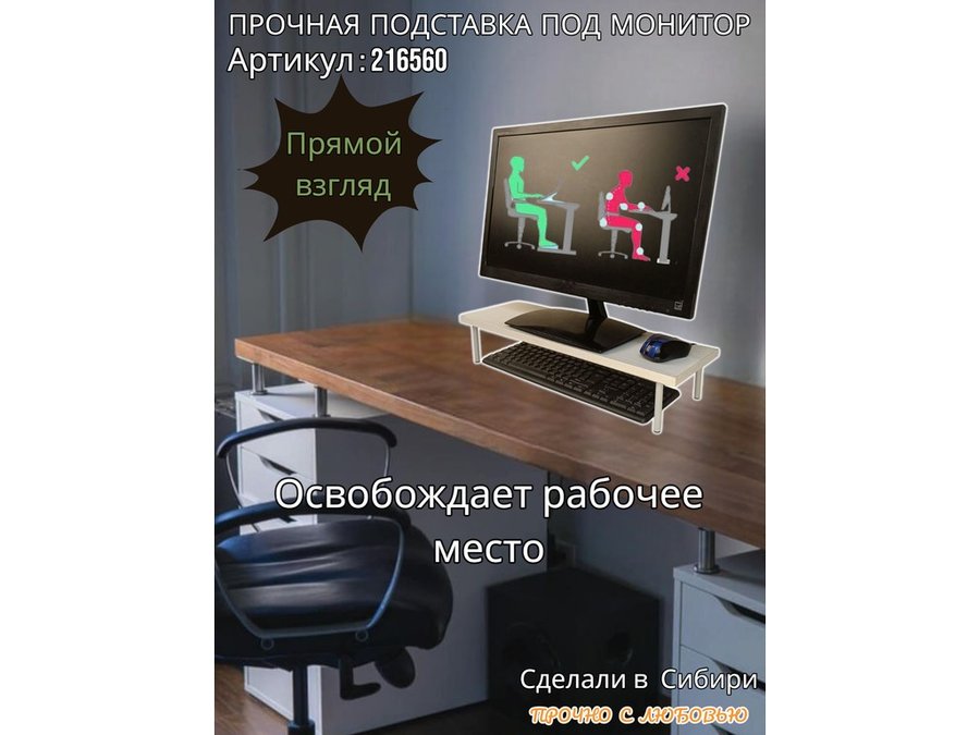• Универсальная подставка для монитора имеет лаконичный и стильный дизайн, идеально подойдет для любого интерьера.