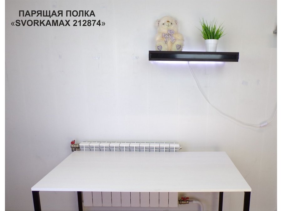 Полка скрытого крепления укомплектована светодиодной подсветкой с выключателем на шнуре и блоком питания