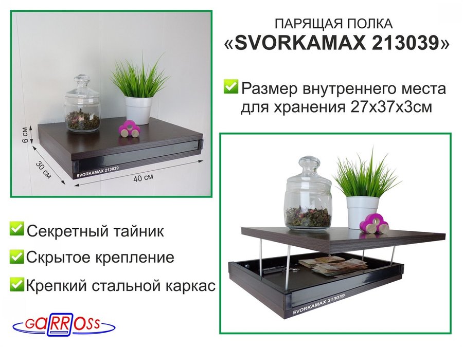 . Полки скрытого крепления с тайником "SVORKAMAX" парящие полки 40х30 см