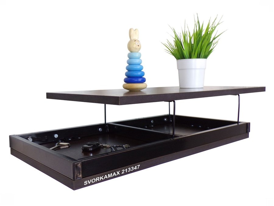 Полка скрытого крепления с тайником открывается приподниманием верхней крышки
