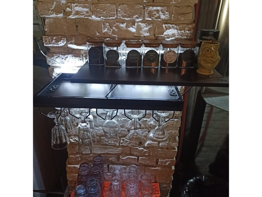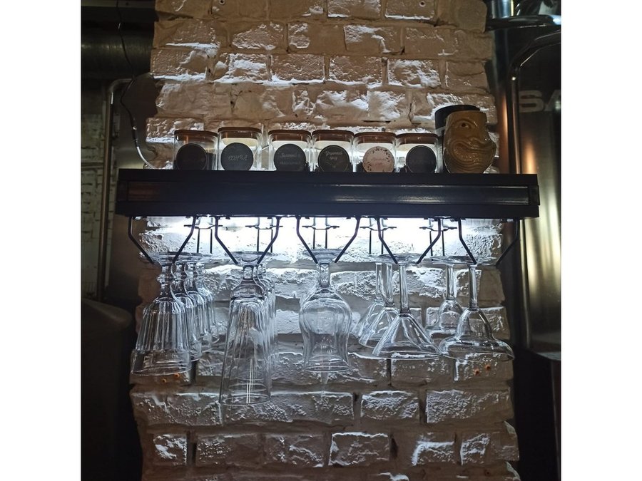 Парящая полка с подсветкой, тайником и держателями бокалов, черный "SVORKAMAX 213666" 60х30см, венге