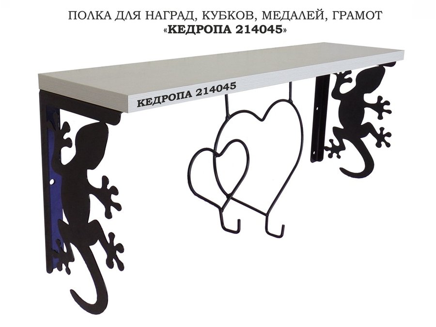 Полка для наград, кубков, медалей, грамот "КЕДРОПА-214045 гекон" размер 15х60х24 см, сосна с сердцем