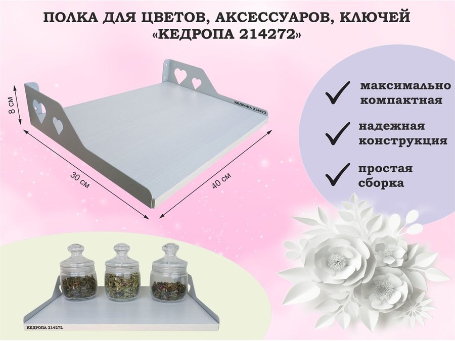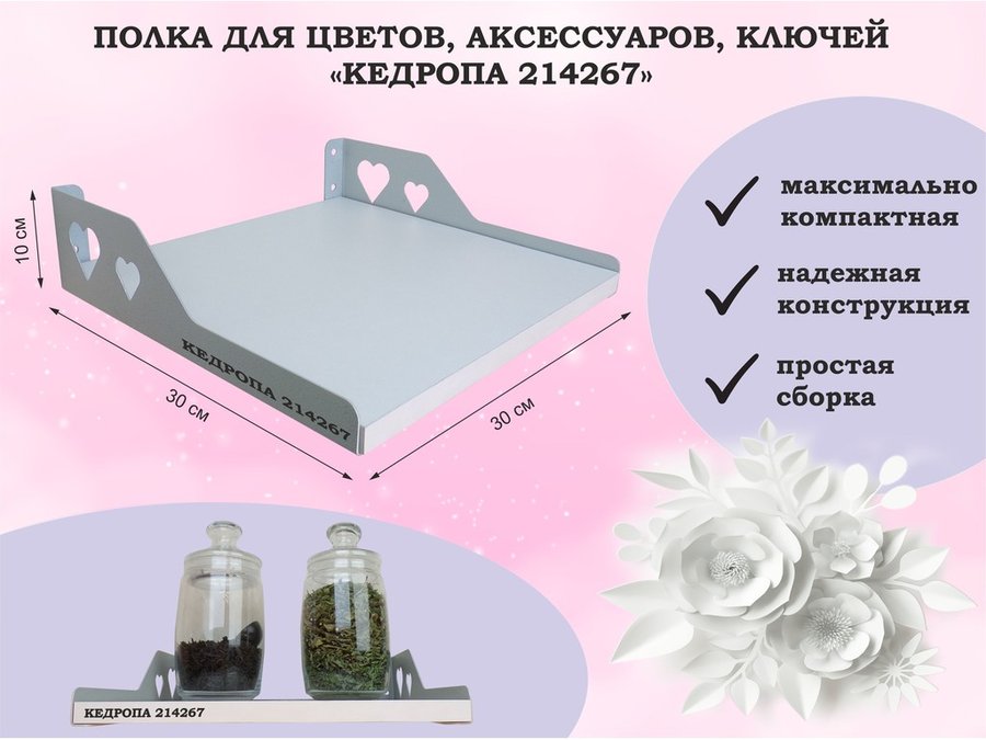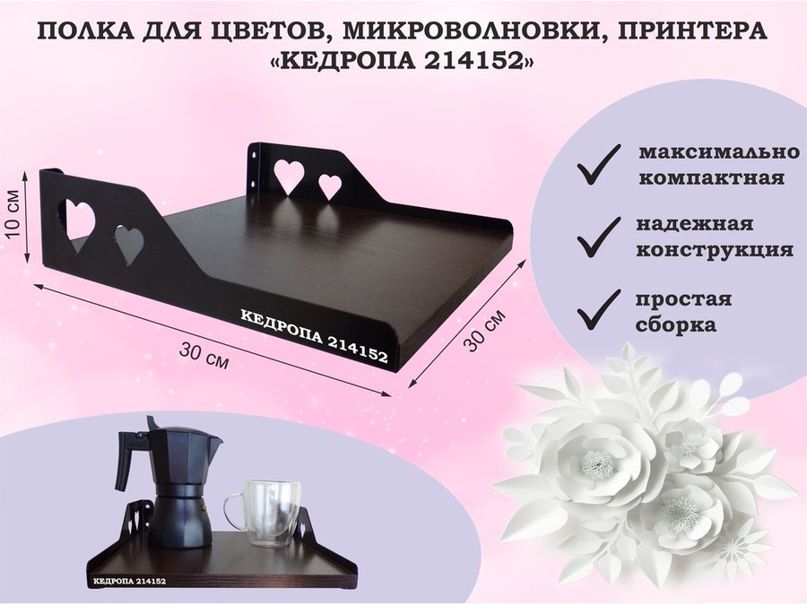 Полка для цветов, микроволновки, принтера "КЕДРОПА-214156" размер 30х30х10 см, белый шагрень, сердце