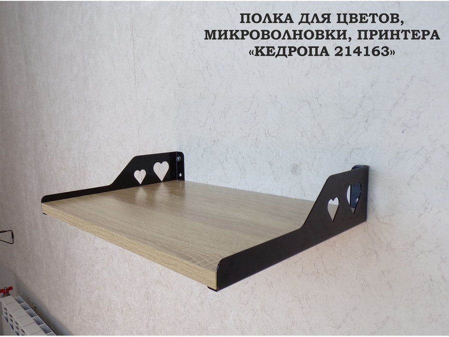 В корзину Купить в 1 клик Полка для цветов, микроволновки, принтера "КЕДРОПА-214163" размер 40х30х10 см, дуб сонома, сердце