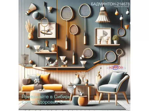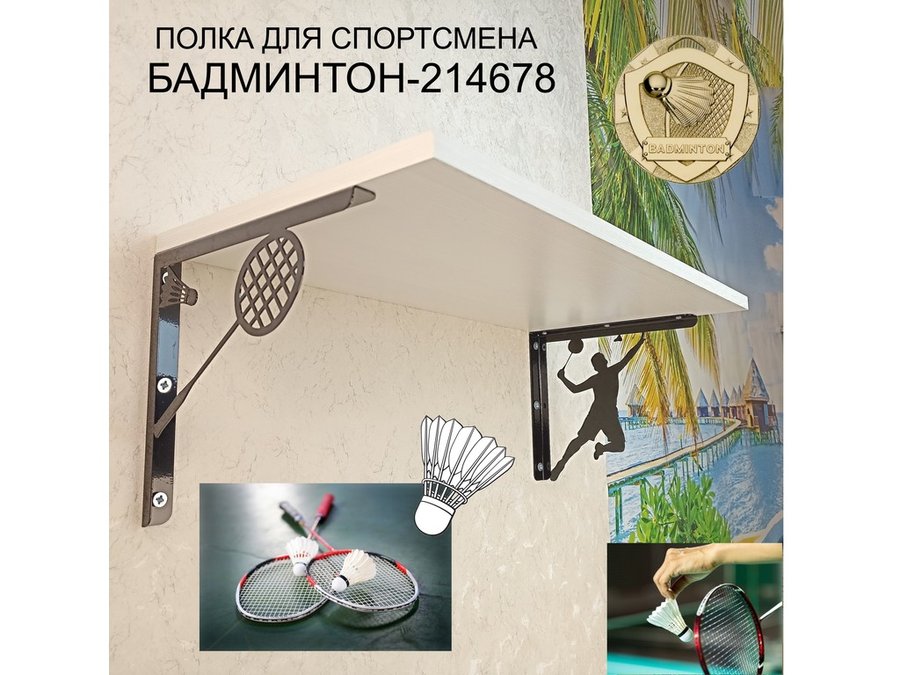 В корзину Купить в 1 клик Медальница спортивная "БАМИНТОН-214678" для кубков, наград, грамот, размер 30х60см