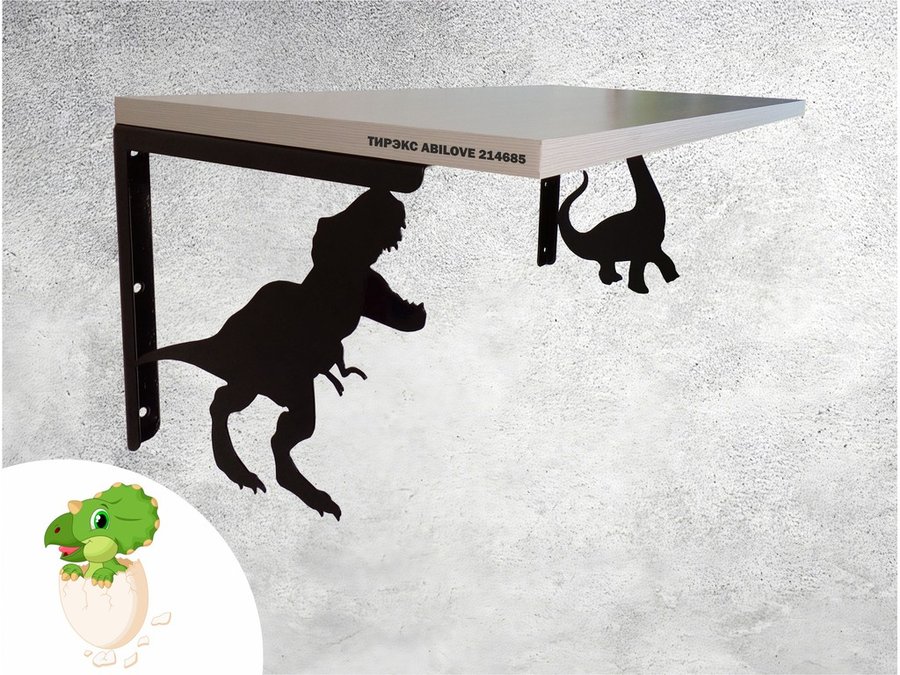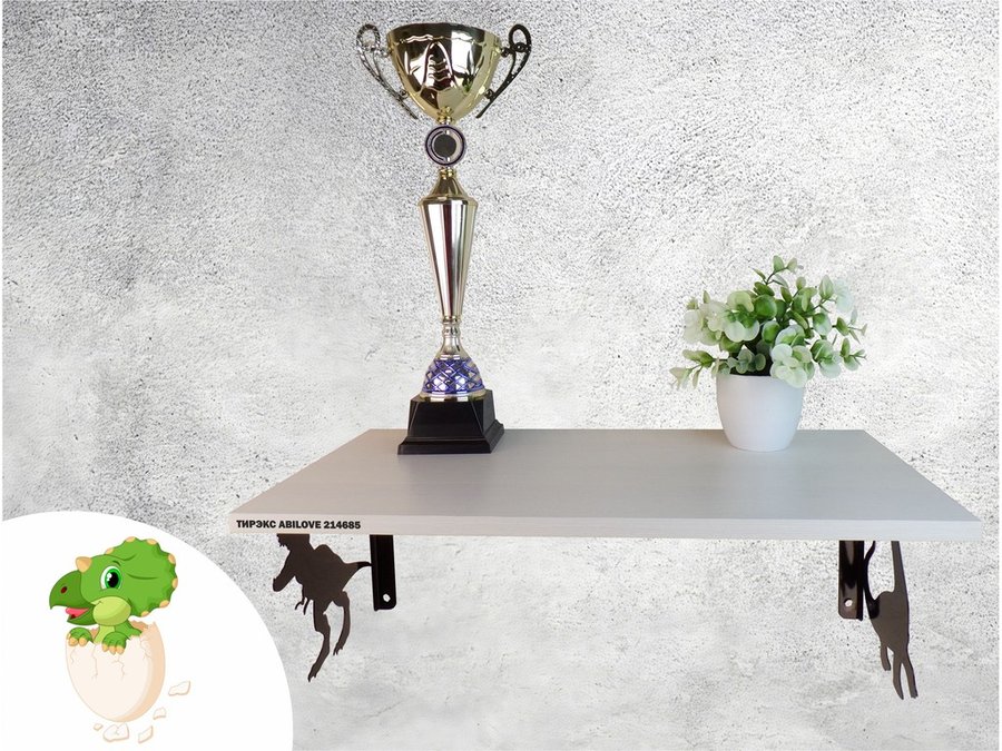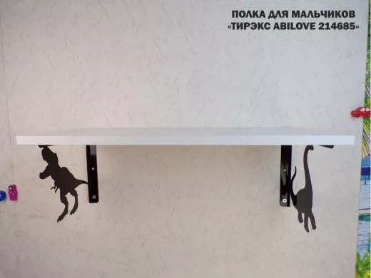 Полка с динозаврами "ТИРЭКС ABILOVE-214685" для конструкторов, машинок, сосна выбеленная, 30х60см