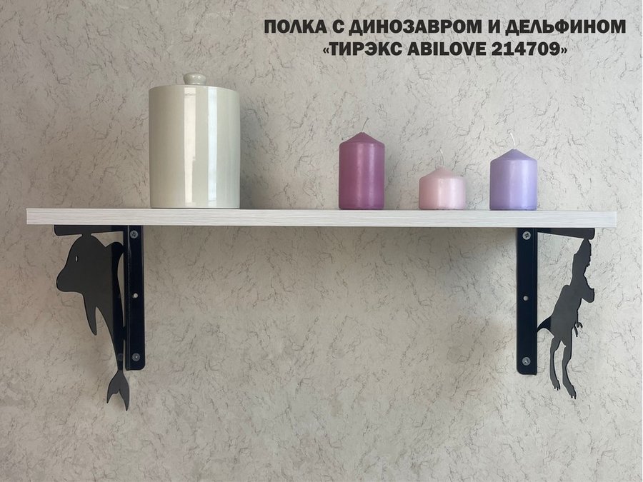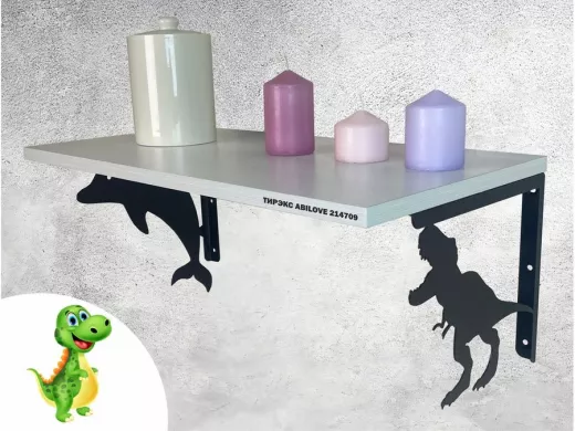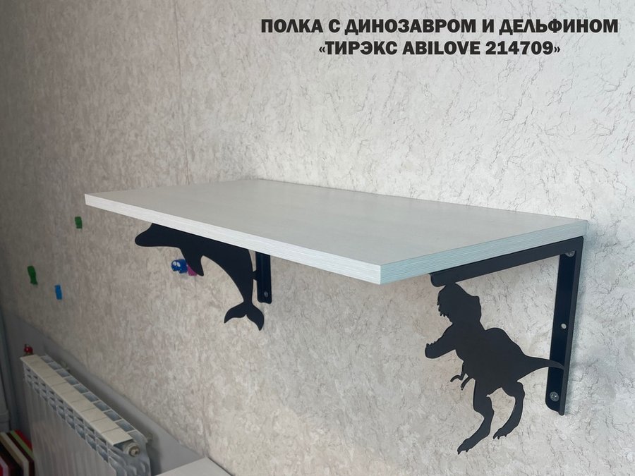 Полка с динозавром и дельфином "ТИРЭКС ABILOVE-214709" для игрушек, сосна выбеленная, 30х60см