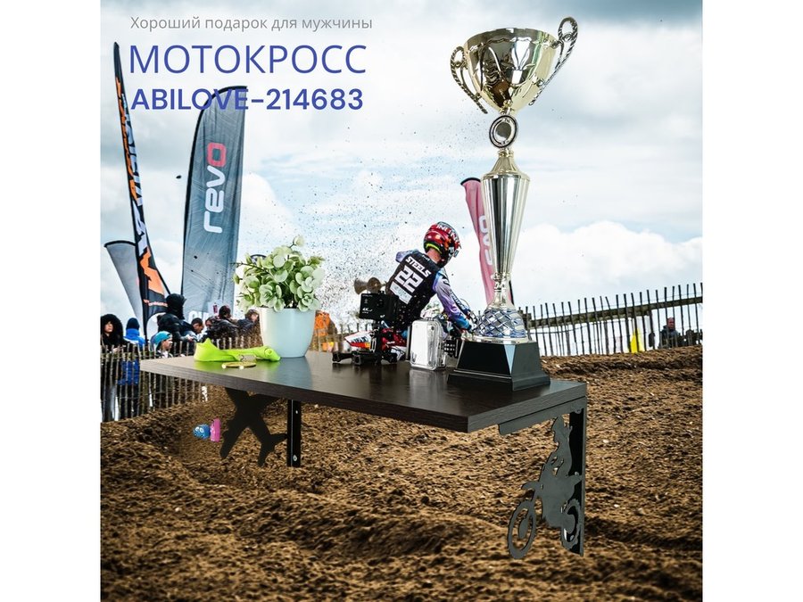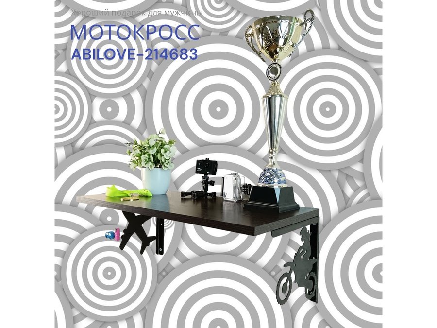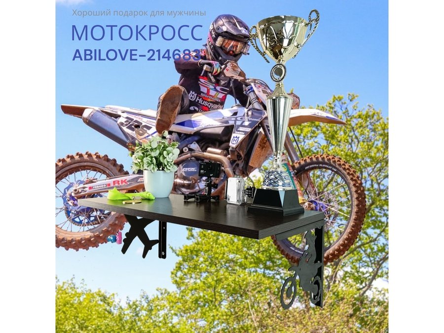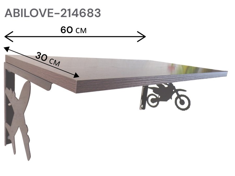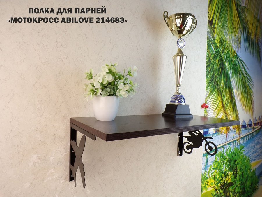 Полка для парней "МОТОКРОСС ABILOVE-214683" для кубков и аксессуаров, венге, 30х60см