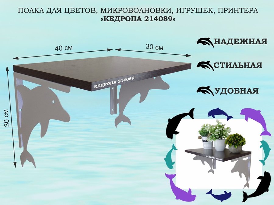 Полка для цветов, микроволновки, игрушек, принтера "КЕДРОПА-214104"размер 30х40x30 см, черный, венге