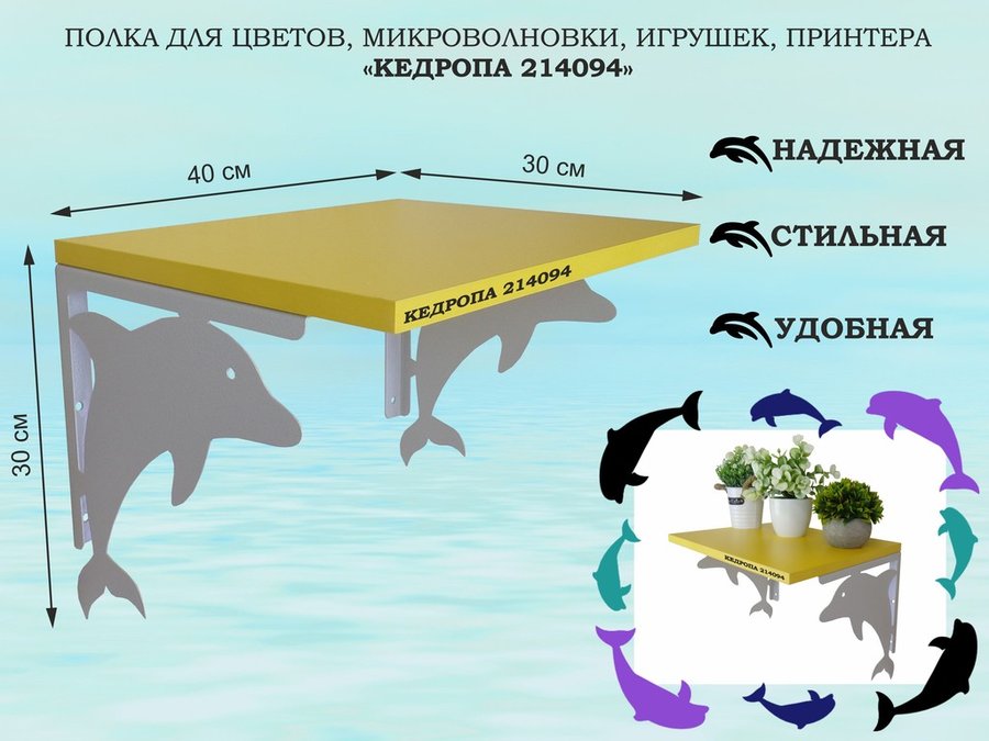 Полка для цветов, микроволновки, игрушек, принтера "КЕДРОПА-214094"размер 30х40x30 см, серый, желтый