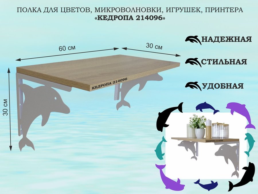 Полка для цветов, микроволновки, игрушек, принтера "КЕДРОПА-214114"размер 30х60x30 см, черный, сосна