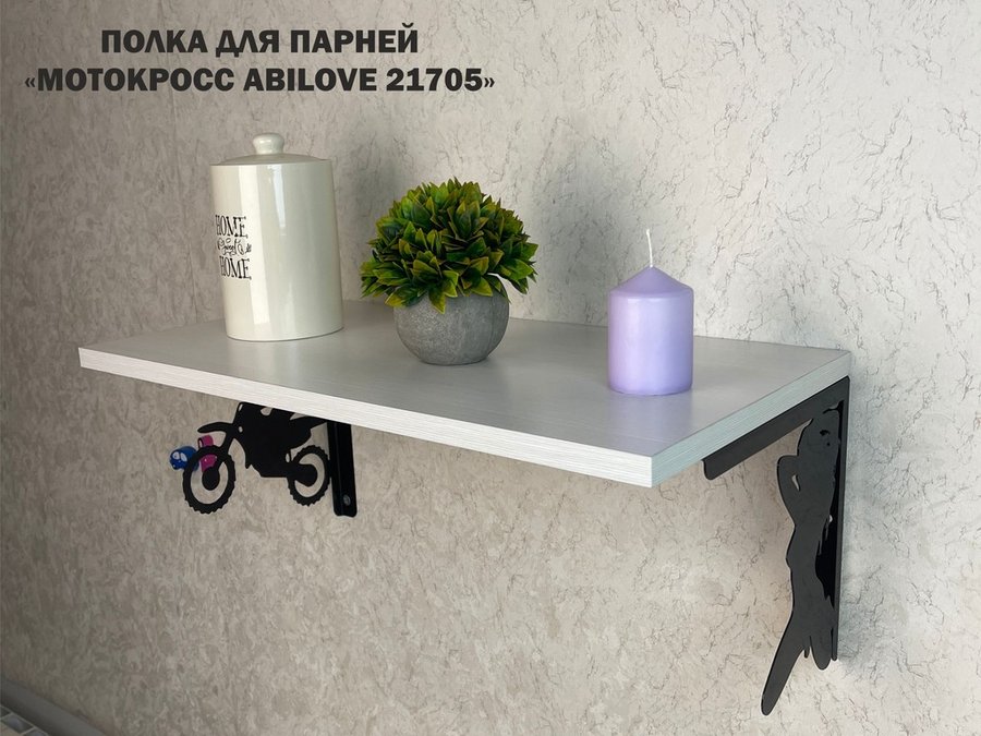 Полка для парней "МОТОКРОСС ABILOVE-214705" для кубков и аксессуаров, сосна выбеленная, 30х60см