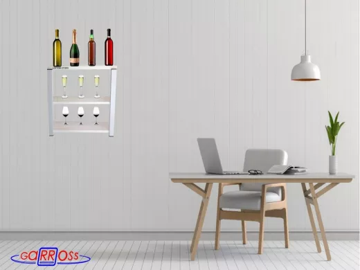 • Полка для хранения бокалов и бутылок для вина идеально подойдет для любого интерьера и существенно сэкономит место на кухне или в гостинной, в офисе и баре.