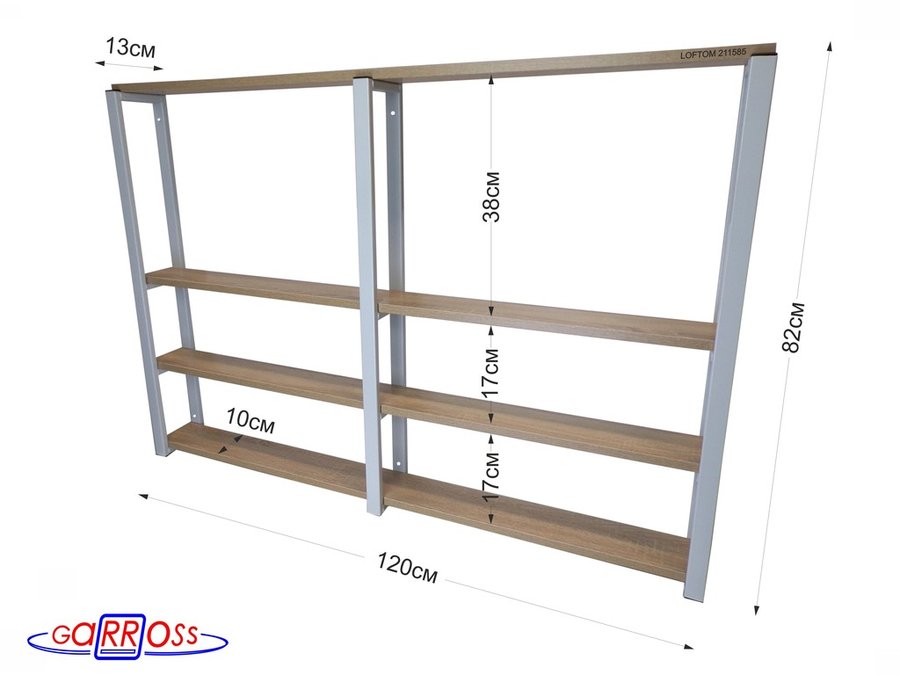 Полка для вина и бокалов, высота 82см, 4 уровня, размер полки 10х120см, серая "LOFTOM 211585" дуб