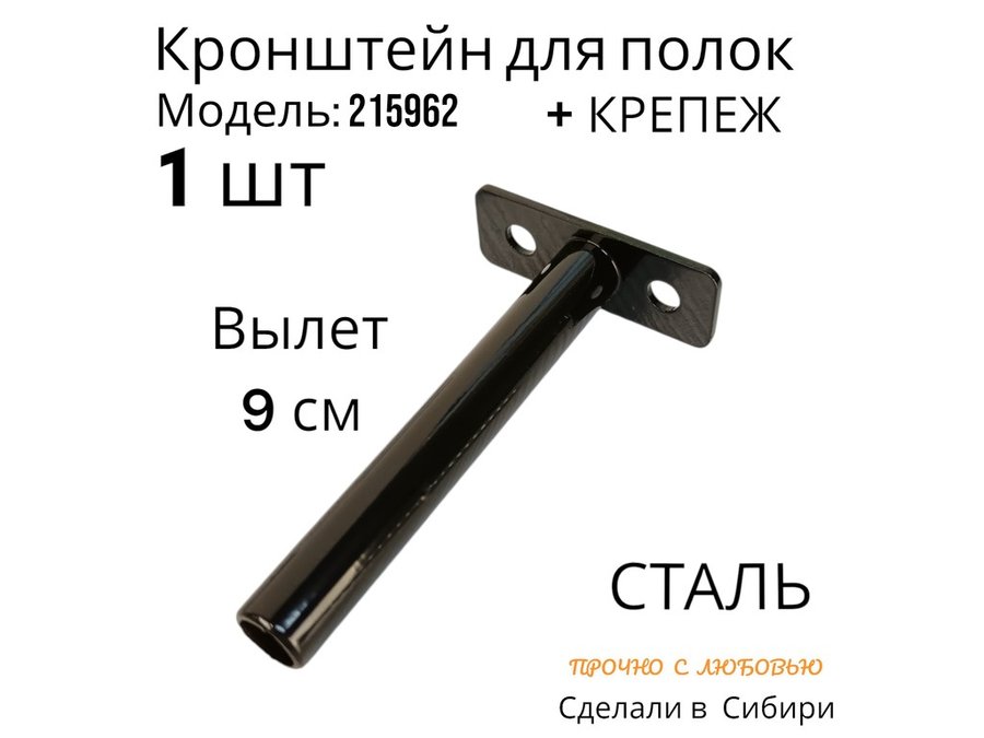 Кронштейн для скрытого крепления полок, 12х90мм, черный, в наборе 1шт "SVORKAMAX-215962" без полки