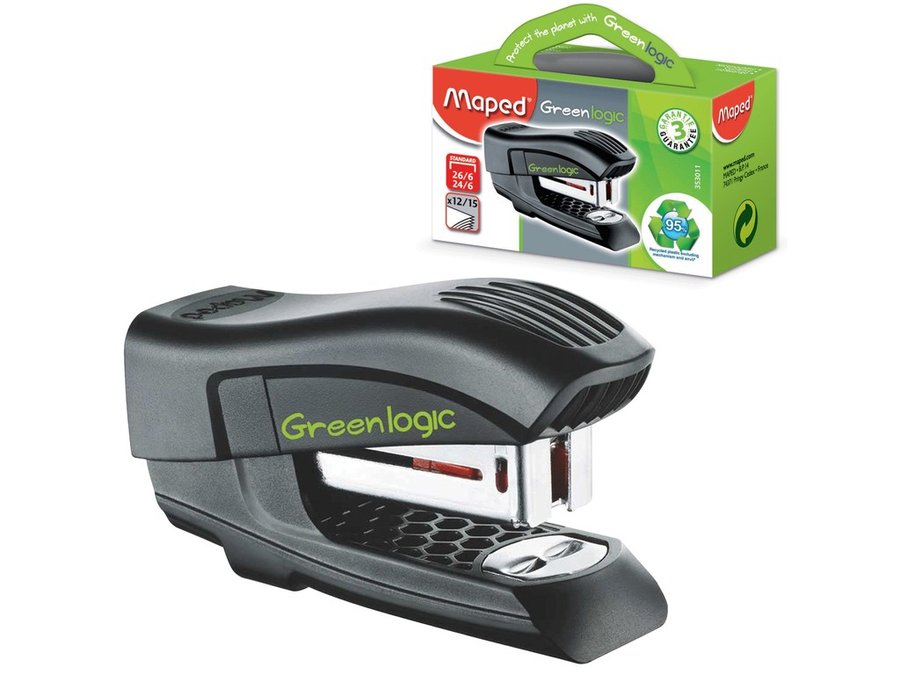 В корзину Купить в 1 клик Степлер №24/6, 26/6 МИНИ "BR-105734" (Франция) "Greenlogic", до 15 листов, с антистеплером, черный