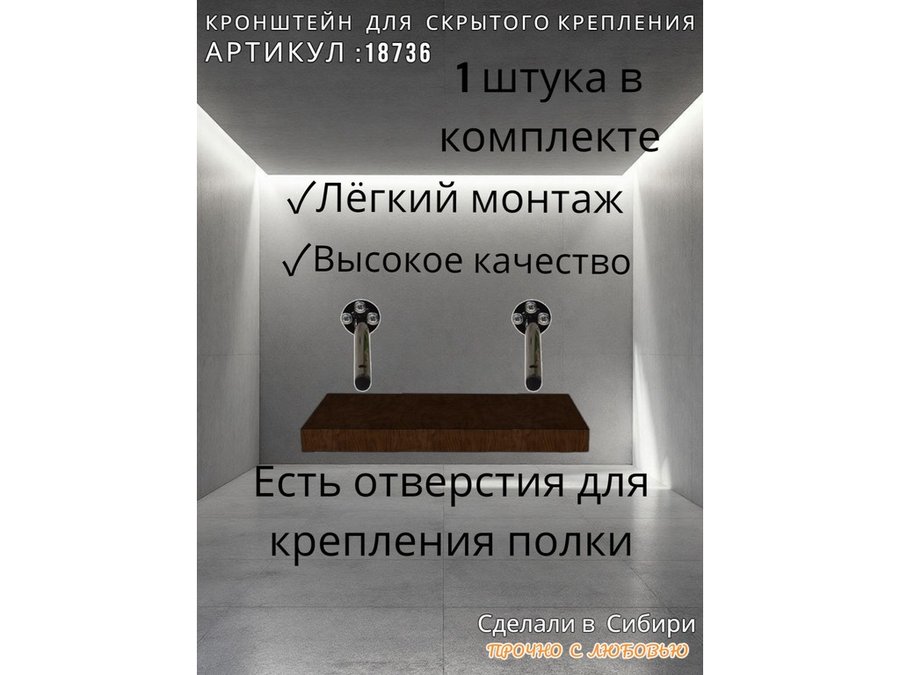 - Кронштейн предназначен для скрытого крепления полок, изготовленных из различных материалов: МДФ, ДСП, дерево, пластик.