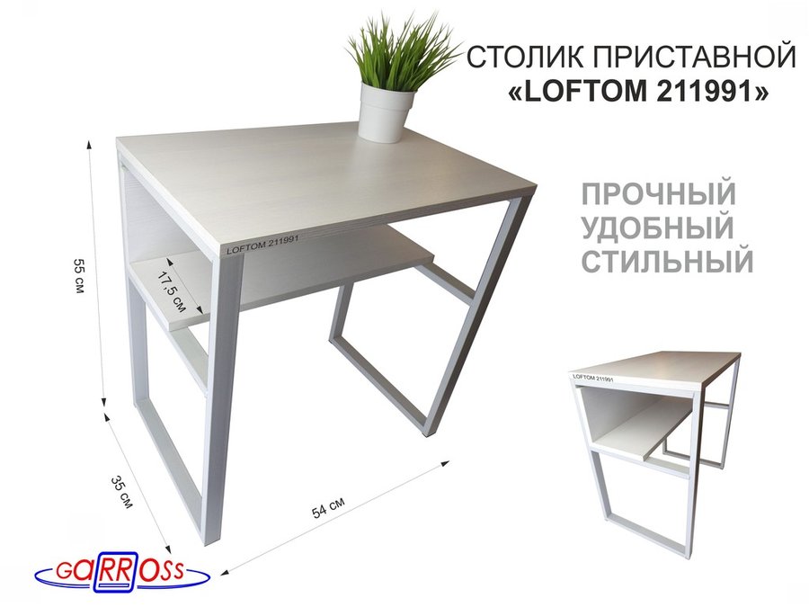 В корзину Купить в 1 клик Столик приставной 56см "LOFTOM 211991" прикроватный стол журнальный с одной полкой, серый, сосна