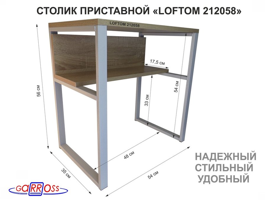 В корзину Купить в 1 клик Столик приставной 56см "LOFTOM 212058" прикроватный стол журнальный с одной полкой, серый, дуб