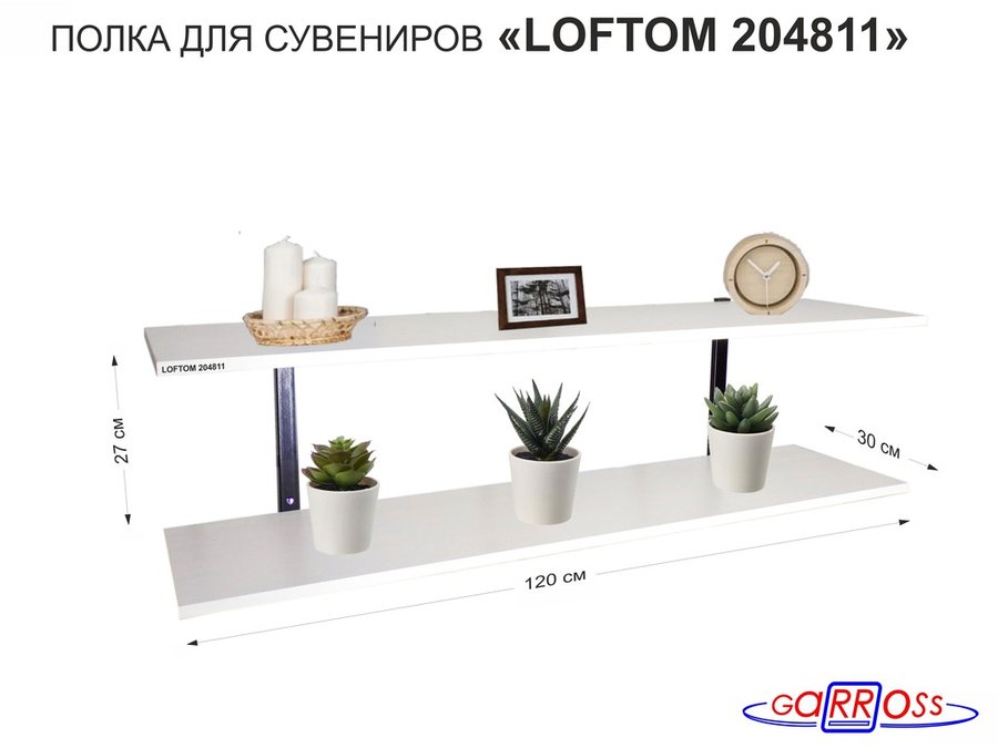 В корзину Купить в 1 клик Полка для сувениров, высота 25см, два уровня "LOFTOM 204811" размер 120х30см, чёрный/сосна выбелен.