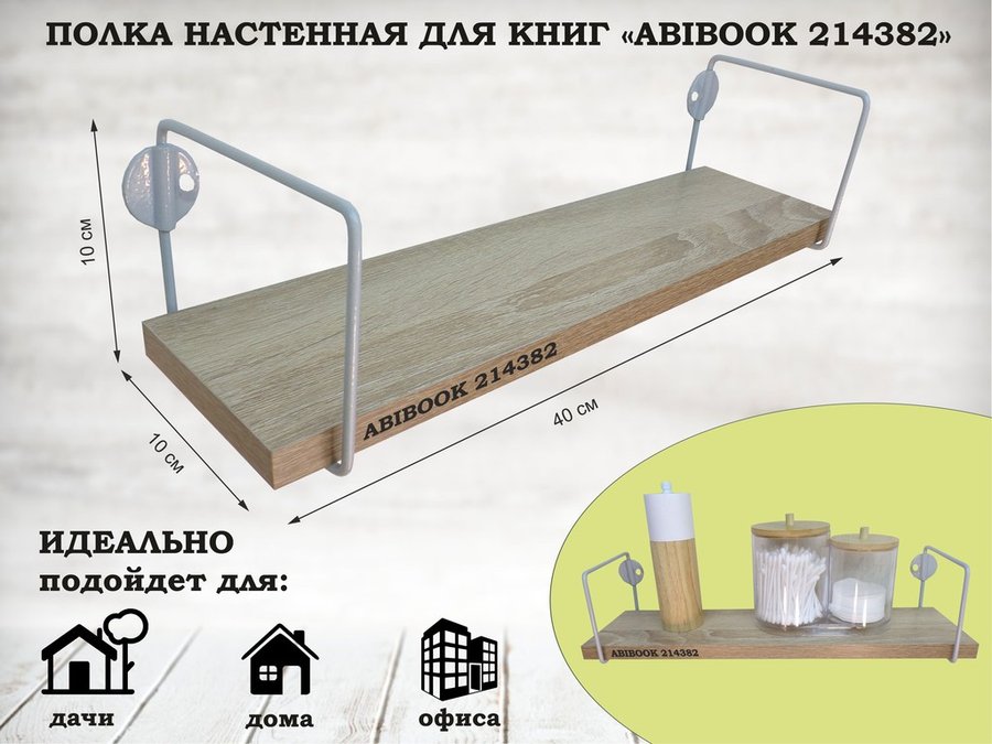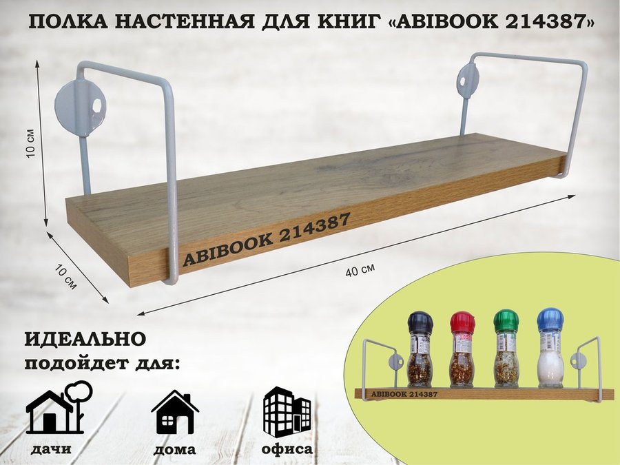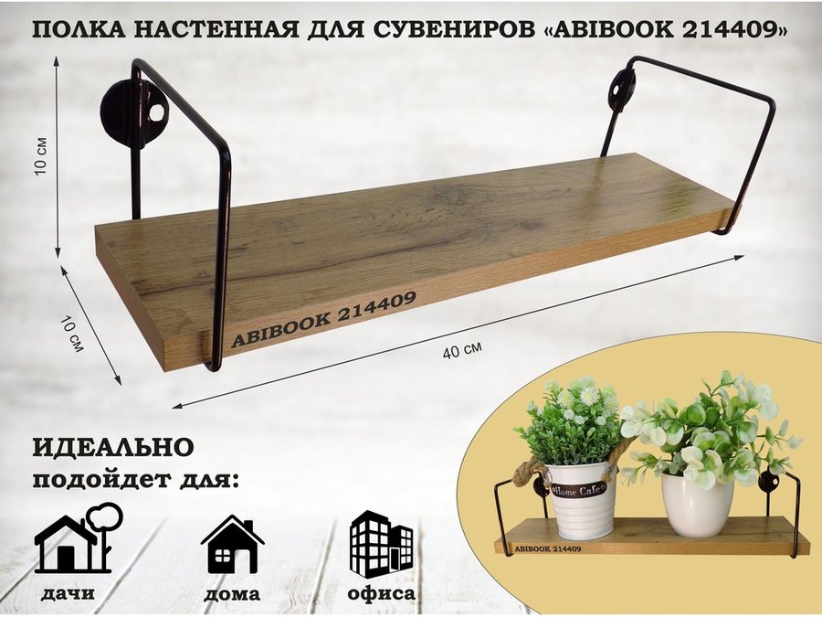 В корзину Купить в 1 клик Полка настенная для сувениров 10x 40 см дуб вотан ABIBOOK-214387
