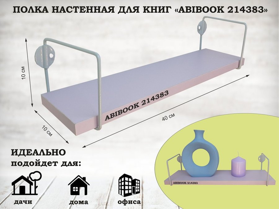 В корзину Купить в 1 клик Полка настенная для сувениров 10x 40 см лаванда ABIBOOK-214383