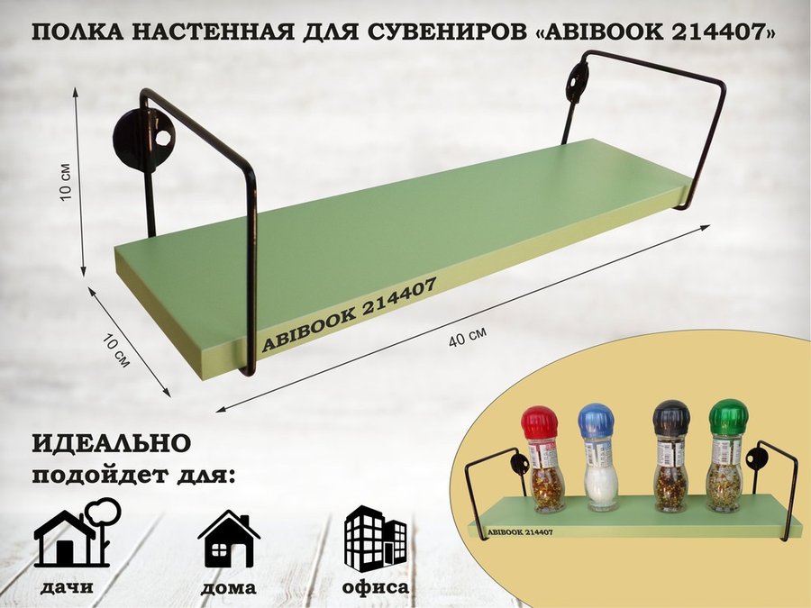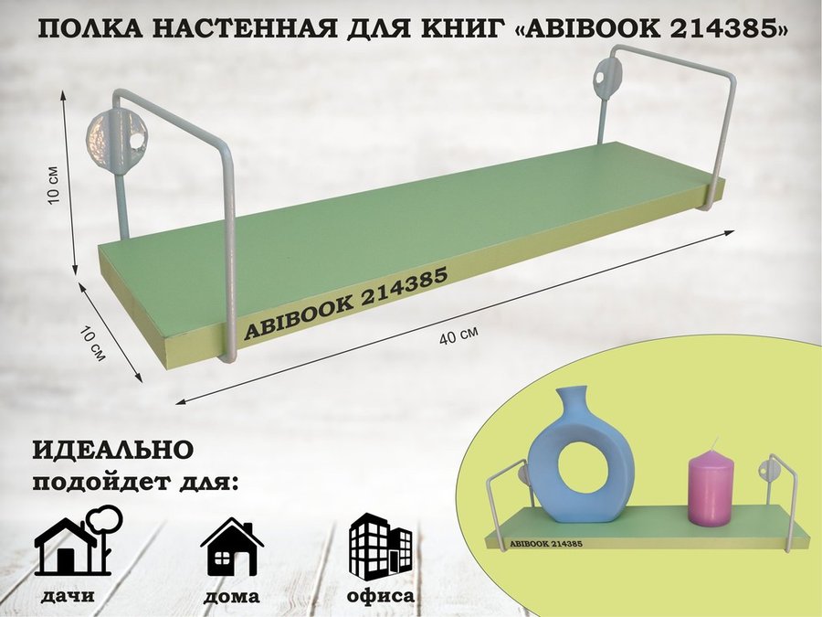 В корзину Купить в 1 клик Полка настенная для сувениров 10x 40 см салатовый ABIBOOK-214385