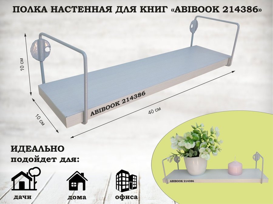В корзину Купить в 1 клик Полка настенная для сувениров 10x 60 см белый шагрень ABIBOOK-214412