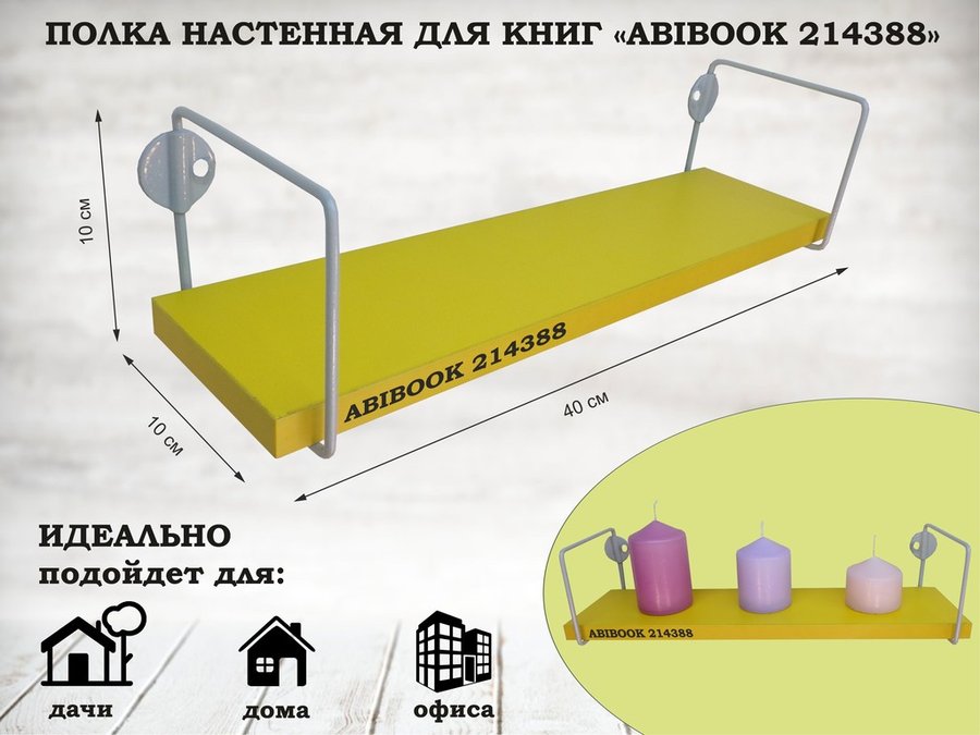 В корзину Купить в 1 клик Полка настенная для сувениров 10x 40 см желтый ABIBOOK-214388